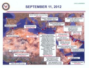 Now, Americans have gotten a glimpse into which naval forces were active on September 11, 2012, and can judge for themselves. A new map has been released by Judicial Watch that details the location of multiple ships in the region.http://www.judicialwatch.org/wp-content/uploads/2014/02/NavymapBenghazi.pdf