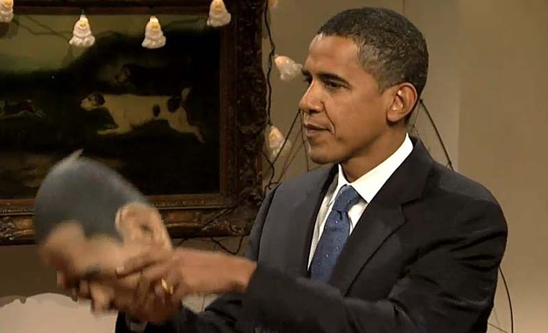 Just like in the famous ‘Silence of the Lambs’ movie, when serial killer, Dr. Hannibal Lecter sliced off the face of his guard and slapped it on his own face for the memorable and shocking escape, Obama has also sliced off the face of America and slapped on the oozing and bloody face of Islam and tyranny. More and more of us are noticing the blood dripping down our own necks. Occasionally Obama notices a head missing in-between golf games.