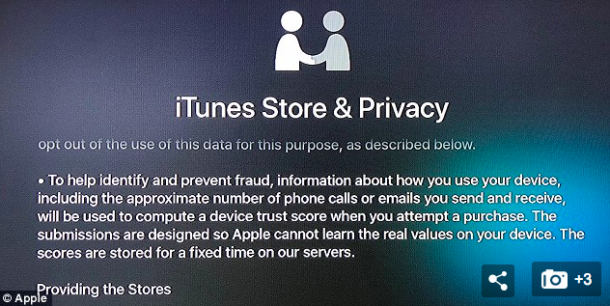 To help identify and prevent fraud, information about how you use your device, including the approximate number of phone calls or emails you send and receive, will be used to compute a device trust score when you attempt a purchase. The submissions are designed so Apple cannot learn the real values on your device. The scores are stored for a fixed time on our servers.