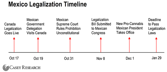 In the meantime, cannabis investors should look to position themselves in select cannabis companies pushing into the soon-to-be massive Mexican market.