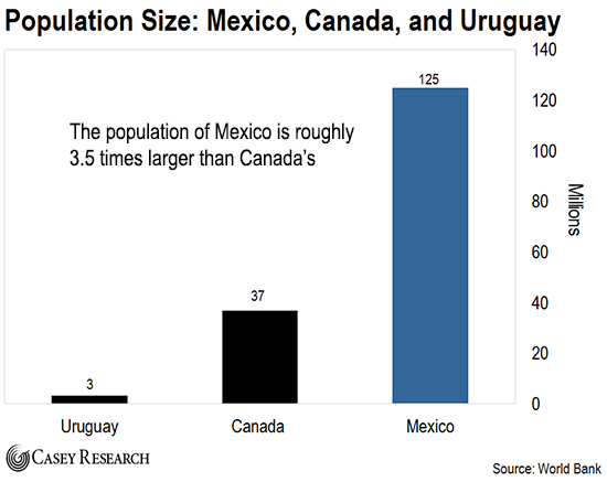Justin’s note: In October, Mexico shocked the world by effectively legalizing cannabis. Today, Crisis Investing chief analyst Nick Giambruno shows us why the country could quickly become the world’s largest cannabis market… eclipsing Canada in a big way.