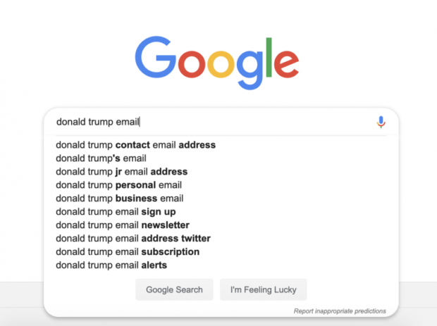 But if you tested that against “donald trump email” you get normal suggestions.